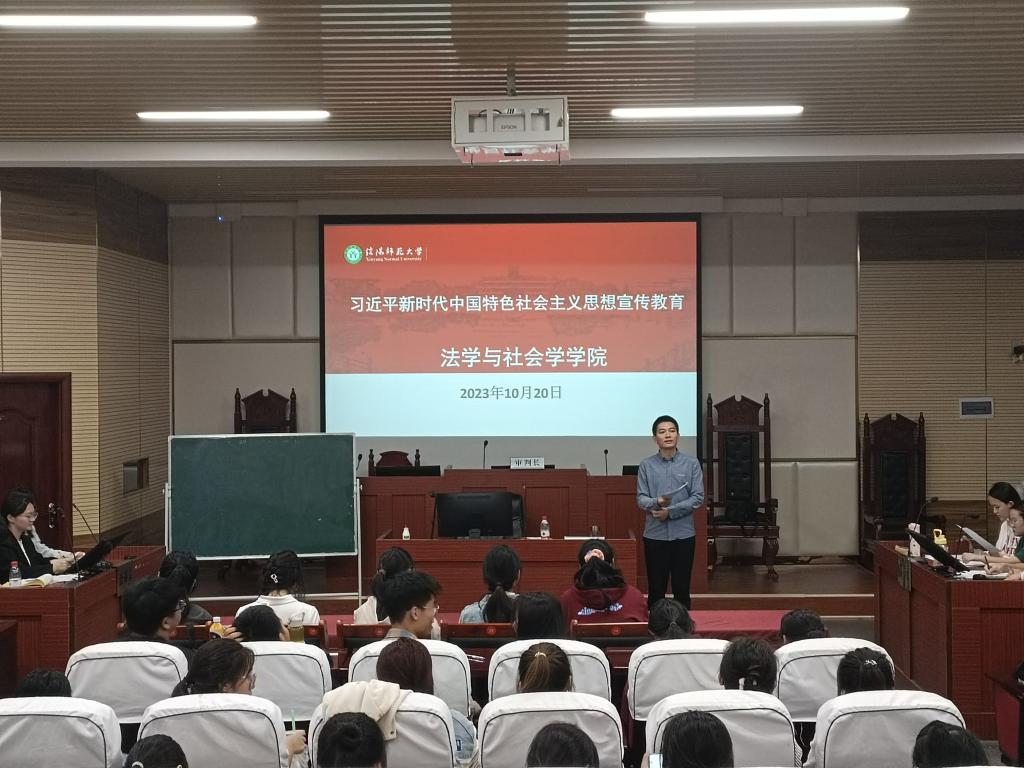 为深入学习贯彻党的创新理论,强化学生的政治意识。10月20日,tyc7111cc太阳成集团在社科楼413举办“习近平新时代中国特色社会主义思想宣传教育”主题班会,由辅导员费泽丹讲授,2023级全体学生参加。