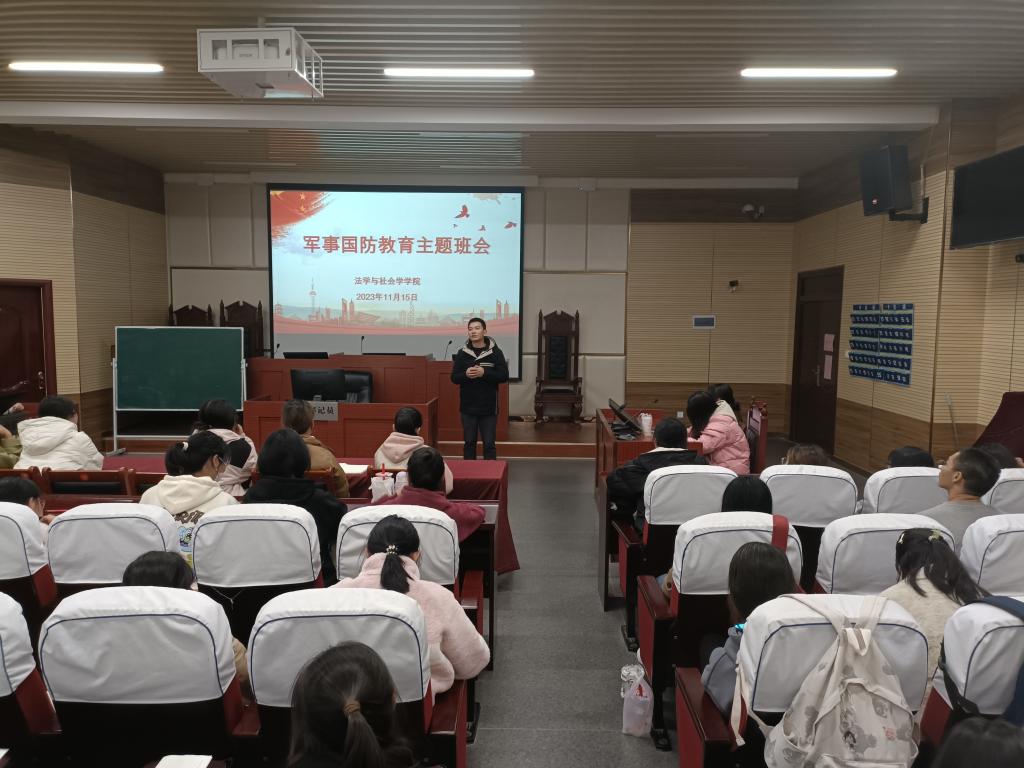 为了增强同学们的国防意识弘扬爱国主义精神。tyc7111cc太阳成集团于1115日在社科楼413举办“军事国防教育”主题班会由辅导员费泽丹讲授,2023级全体学生参加。