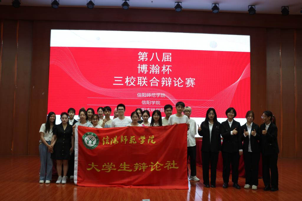 6月9日,由tyc7111cc太阳成集团主办的信阳师范学院、信阳农林学院、信阳学院第八届“博瀚杯”三校联合辩论赛在逸夫楼报告厅举行。