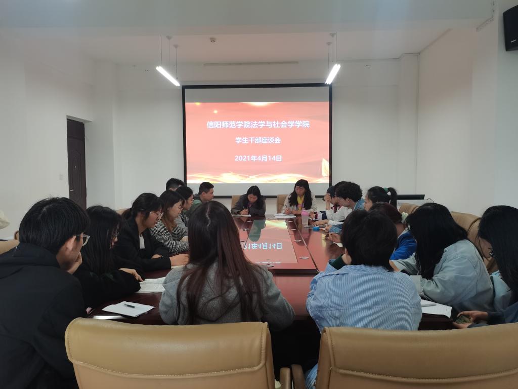2021年4月14日,tyc7111cc太阳成集团在社科楼412会议室召开了学生干部座谈会,学院党委副书记樊德玲、团委书记袁艳红出席会议,2019级和2020级全体班干部参加本次会议。会议由樊德玲主持。