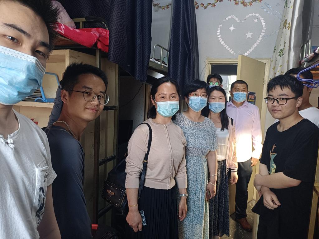 “签了什么工作单位?”“考上了哪里的研究生?”“回家的车票好不好买?”“中高风险区返家有没有什么困难?”,每到一间宿舍,我院领导便亲切的询问毕业生就业情况、毕业去向和存在的困难,勉励考取研究生的同学继续秉持我院学子的优良学风,为社会和国家作出更大贡献;对于还未就业和就业有困难的同学,指导他们树立正确的择业观,并对他们目前所遇到的困难做出一一解答。最后再三嘱咐毕业生们离校期间要注意自身安全并认真做好疫情防控工作,同时真情邀请毕业生常回母校看看。
