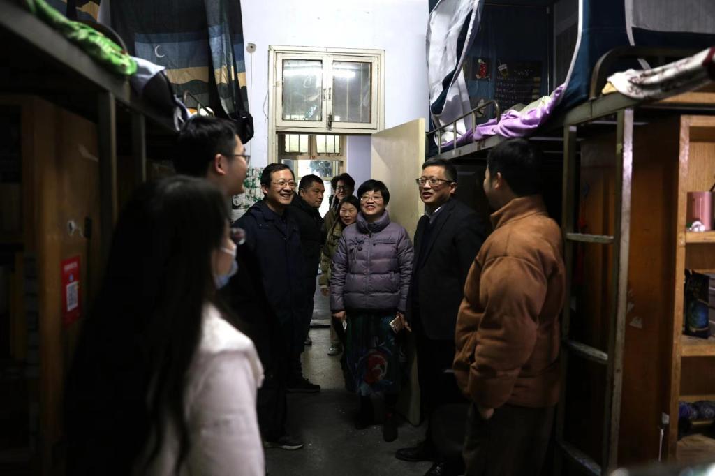 2月20日晚18点,tyc7111cc太阳成集团党委书记尚红林、党委副书记李莉、副院长张玉鹏、团委书记王艳丽、辅导员袁艳红老师、郭瑞老师、刘文君老师带领团委学生会主席团成员,深入学生宿舍,关心慰问返校学生。